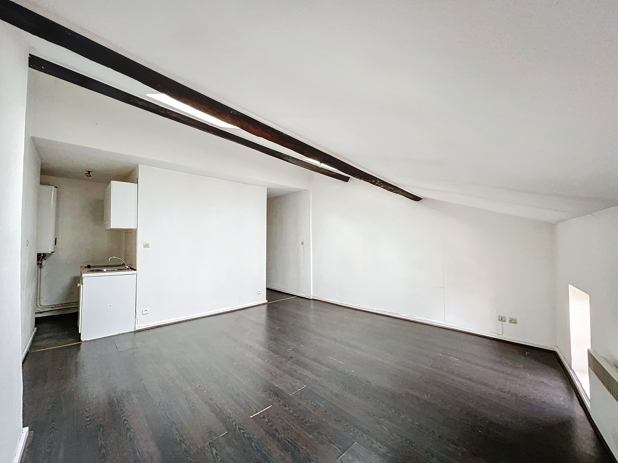 Nancy (54000)Chambre séparée avec salle de bain attenante, WC séparés de la salle de bain, un séjour aéré par le côté mansardé, un vrai cocon en centre-ville ! Dispo début juillet.