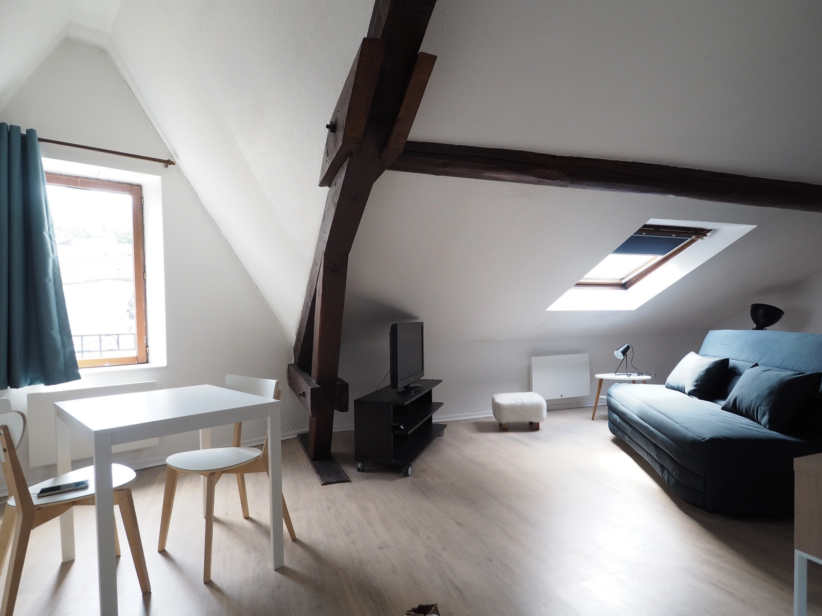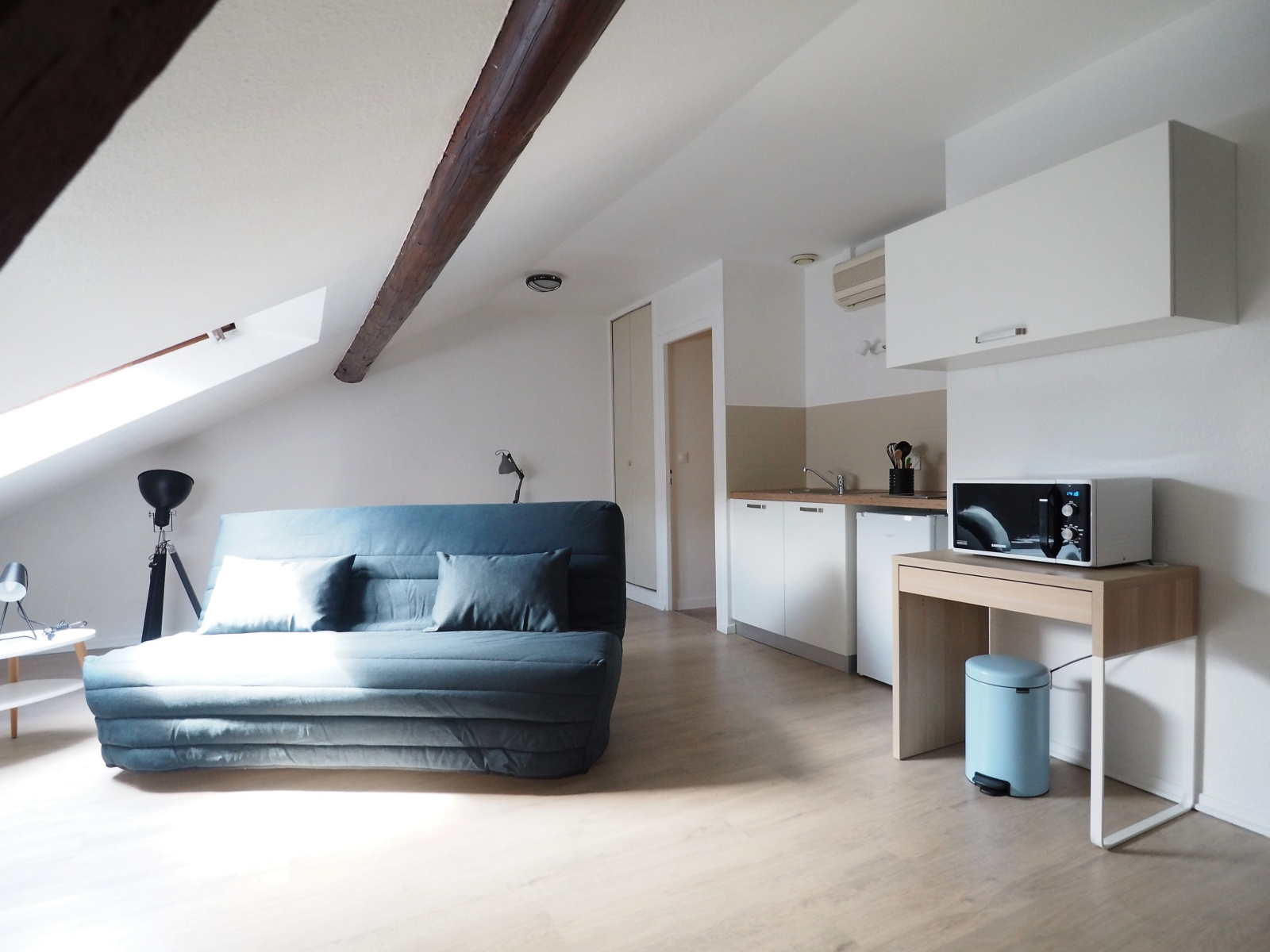 Vandoeuvre-lès-Nancy (54500)Grand studio rénové récemment, idéalement situé entre le Vélodrome et Brabois, à deux pas du tram, et entièrement meublé. La pièce de vie se décompose en 3 espaces : coin salon, salle à manger, et bureau! Le plus ? L'appartement est équipé d'une climatisation. Disponible début juin !