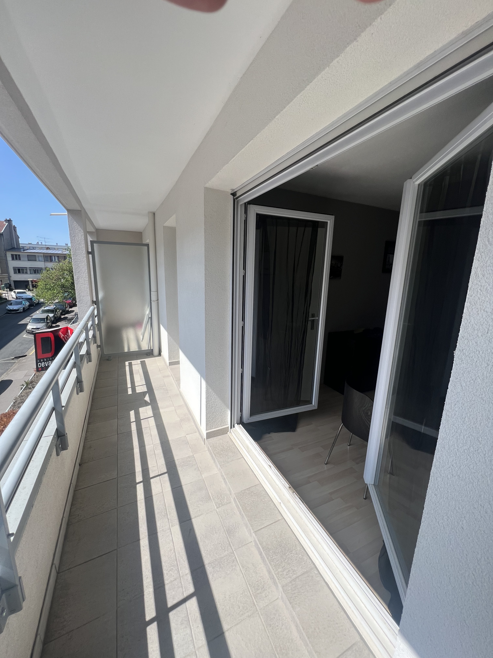 Un appartement comprenant une entrée avec rangements, séjour, cuisine séparée. Accès balcon.