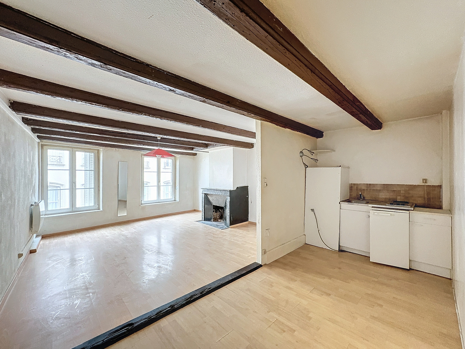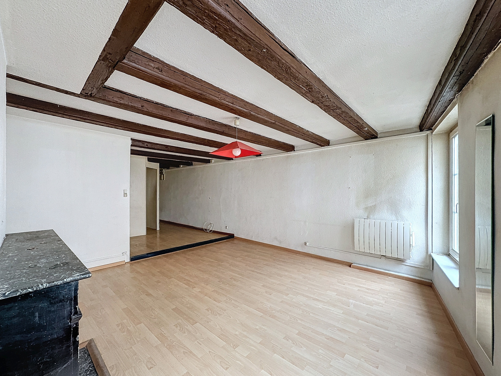 Nancy (54000)QUARTIER CHARLES III - Au deuxième étage d'une petite copropriété à faibles charges, je vous présente ce F2 traversant de 48m2 se composant d'une entrée donnant sur une grande pièce à vivre avec poutres et cheminée, une chambre donnant sur l'arrière et une salle d'eau.