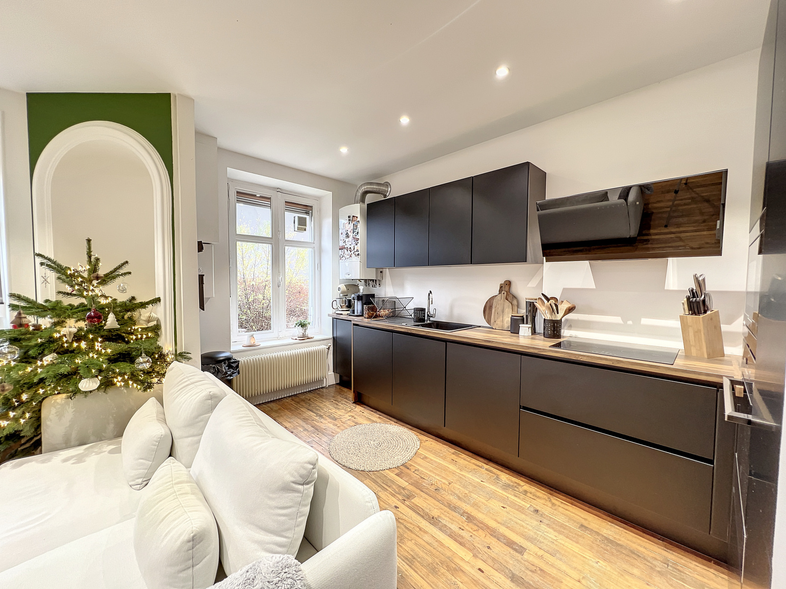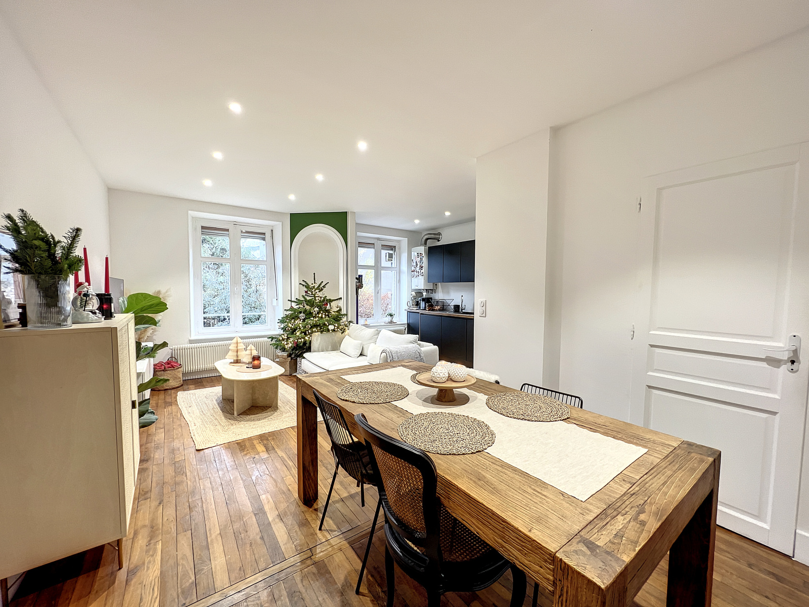 Comprenant une grande pièce à vivre salon salle à manger cuisine équipée.