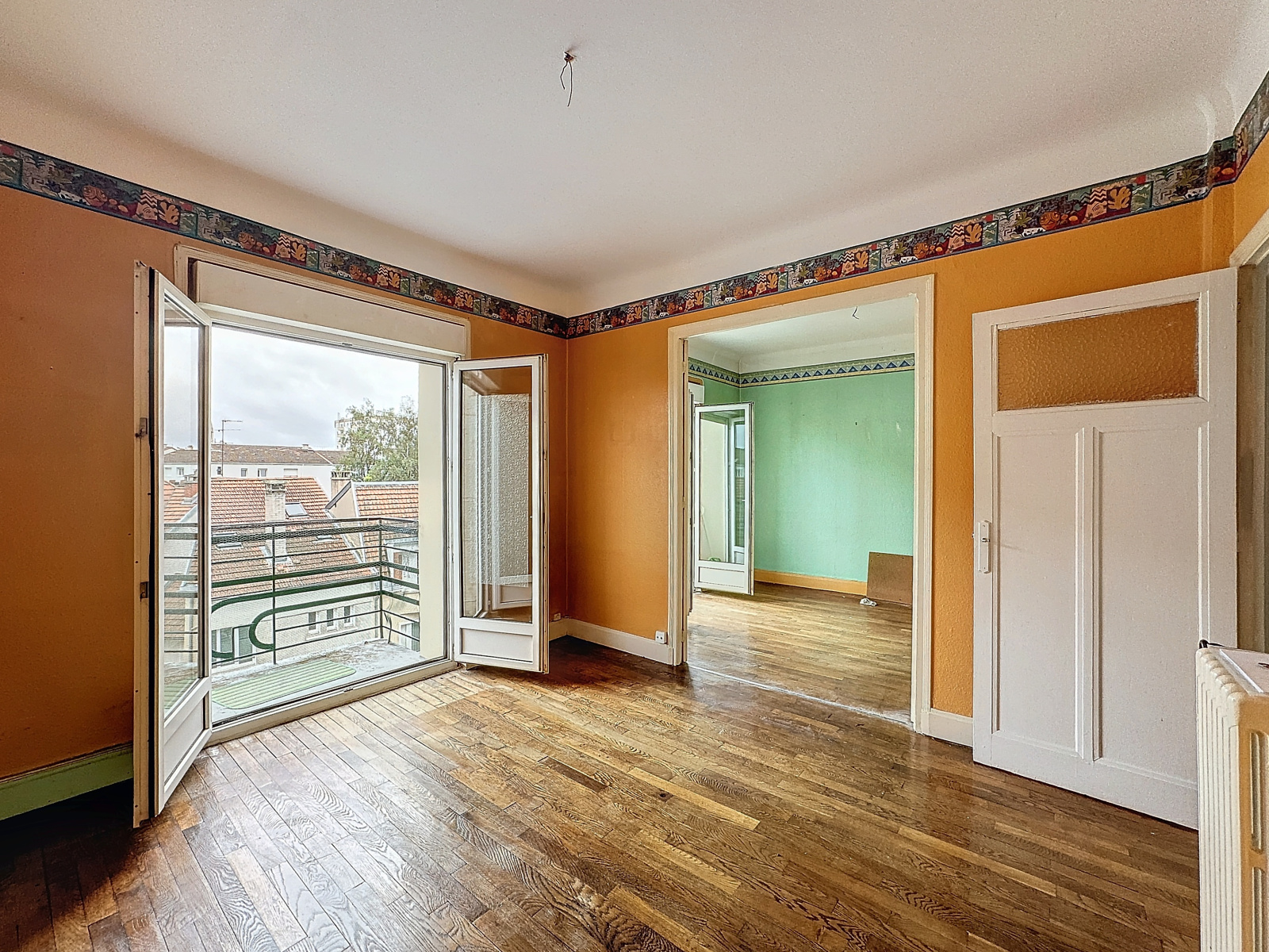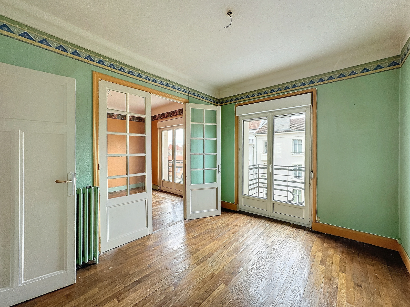 Nancy (54000)NANCY THERMAL - Dans un petit immeuble de 5 logements, voici un appartement se composant d'une belle entrée déservant en étoile un double salon-salle à manger donnant sur deux balcons avec une vue sur la sublime basilique Notre Dame de Lourdes, d'une chambre sur l'arrière et d'une salle de bains. Selon votre projet, il est aussi possible d'aménager le bien en créant deux chambres.