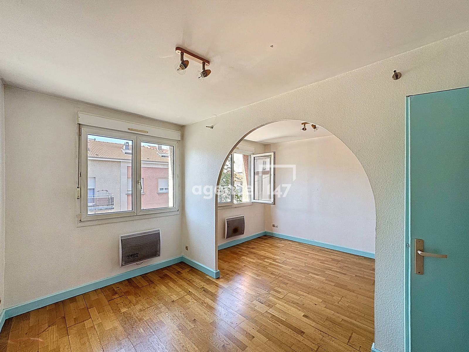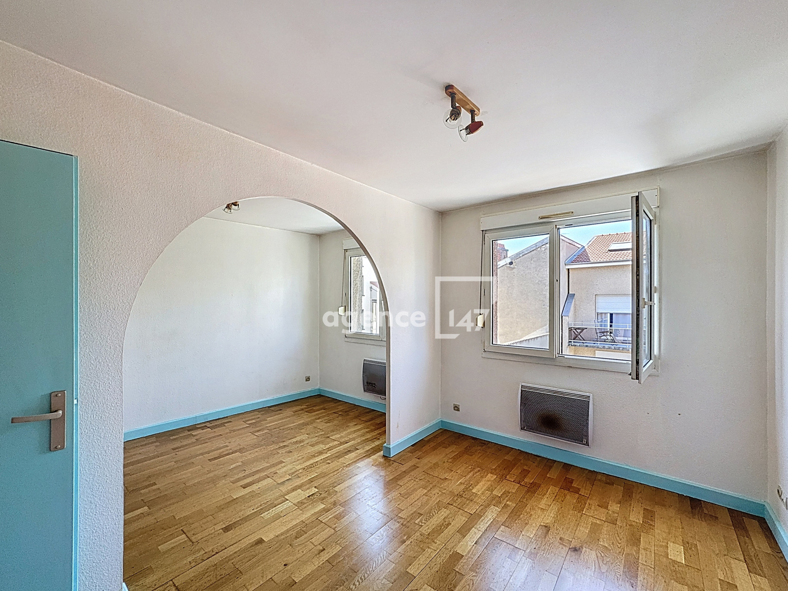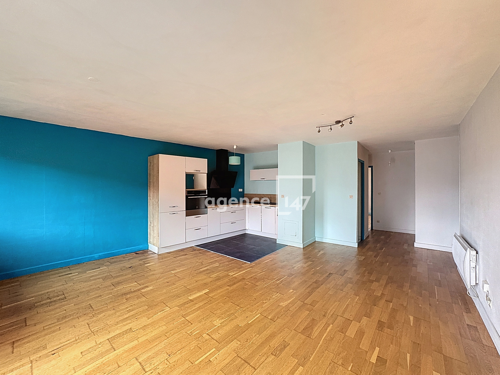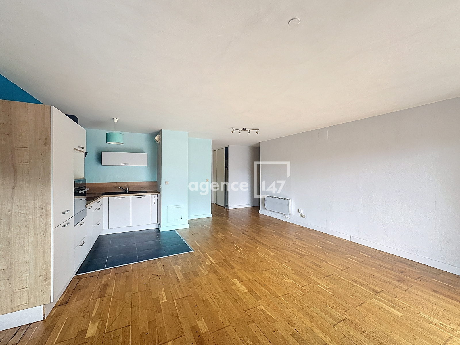 Vous profiterez d'une grande pièce à vivre baignée de lumière, avec cuisine équipée et accès direct au balcon. Un couloir équipé de beaux rangements mène à une spacieuse chambre de 20 m², facilement divisible pour créer une seconde chambre si besoin, ainsi qu'à une salle de bains. WC séparés.