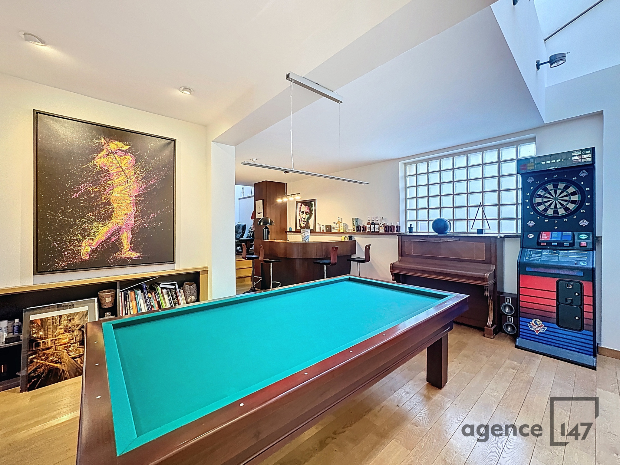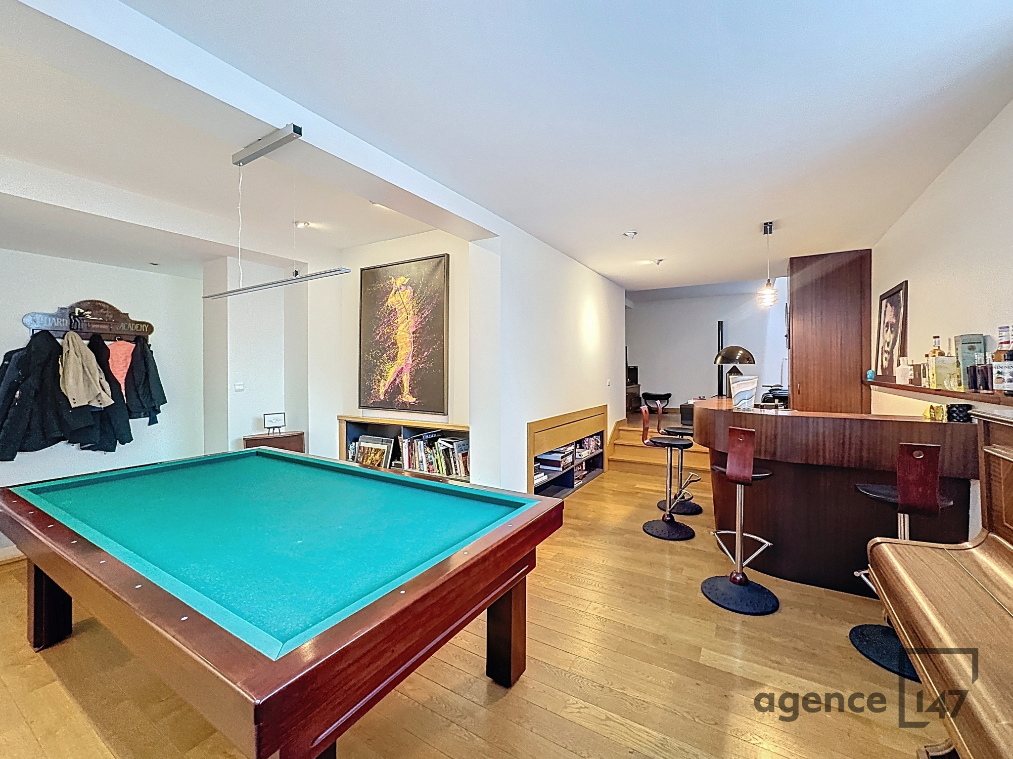 Au premier niveau, un très beau coin détente, bar-billard-coin lecture.