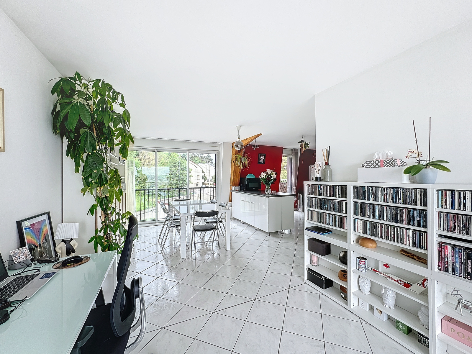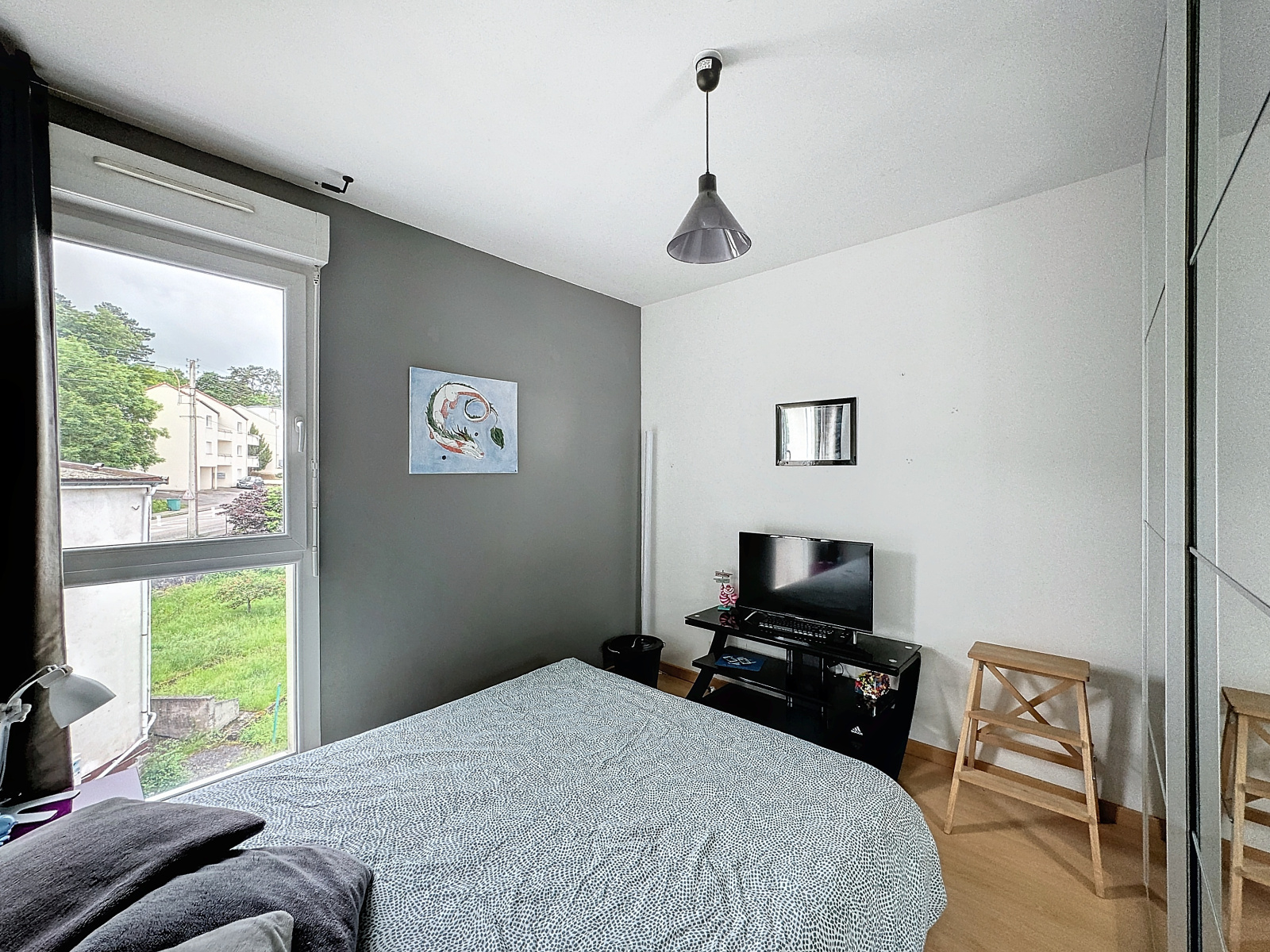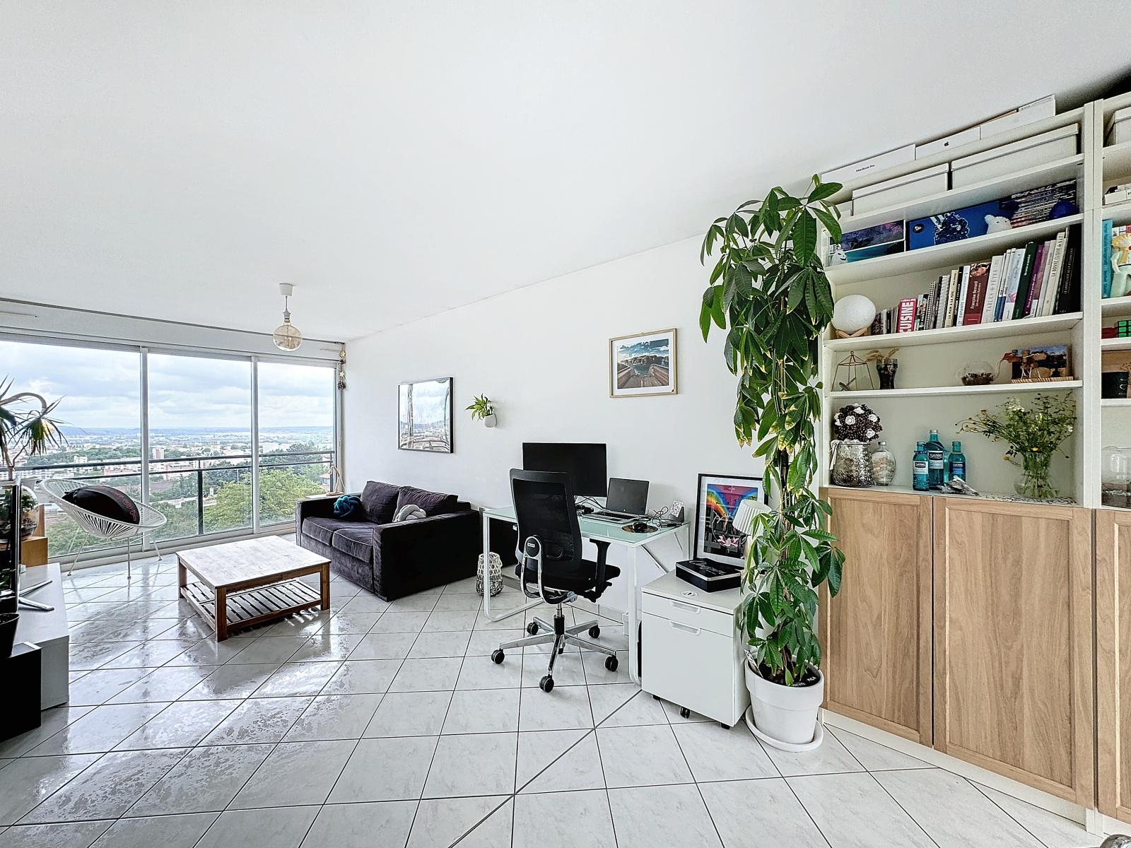 À l'étage, un superbe salon-séjour sur cuisine équipée. Rangements, salle d'eau privative et chambre parentale.